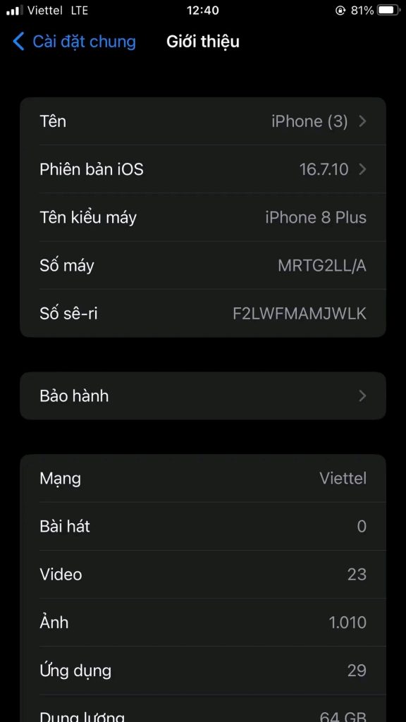 Để kiểm tra các bạn vào cài đặt>cài đặt chung>số máy